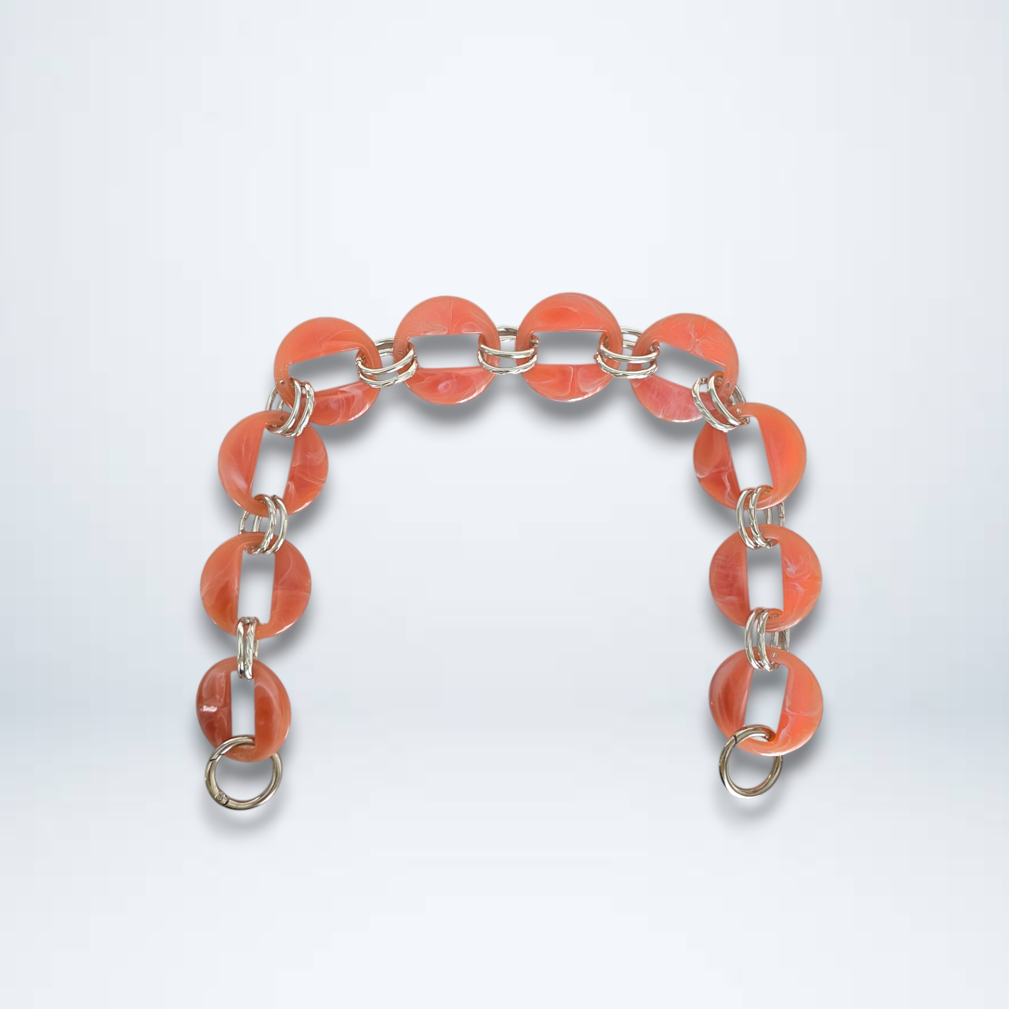 This acrylic marble-link handle is designed to transform any handmade bag into a statement piece. Featuring round acrylic rings with a marbled glossy finish, each link is connected by silver-tone jump rings, creating a lightweight yet striking accessory that adds personality and contemporary elegance to your design.