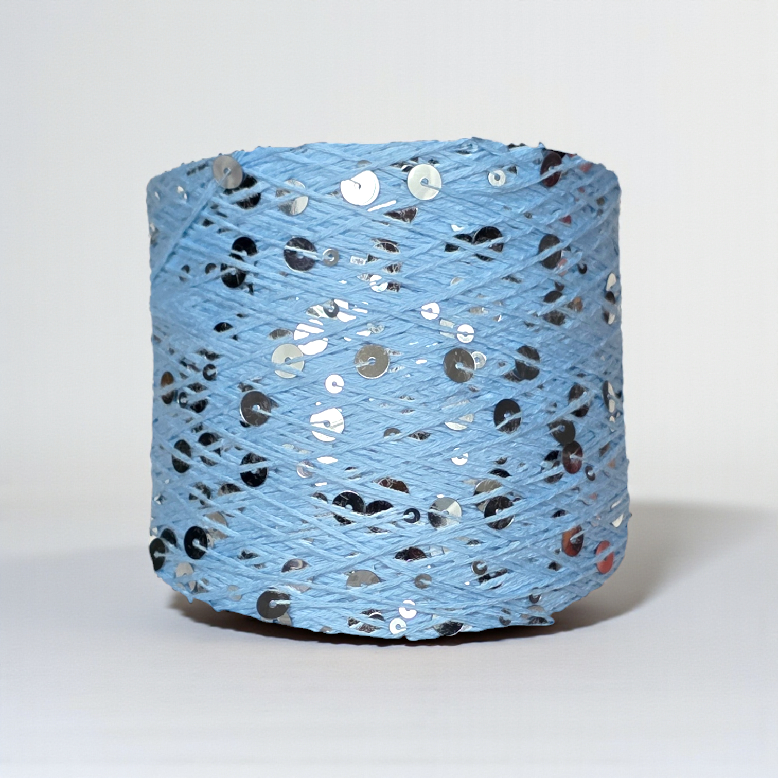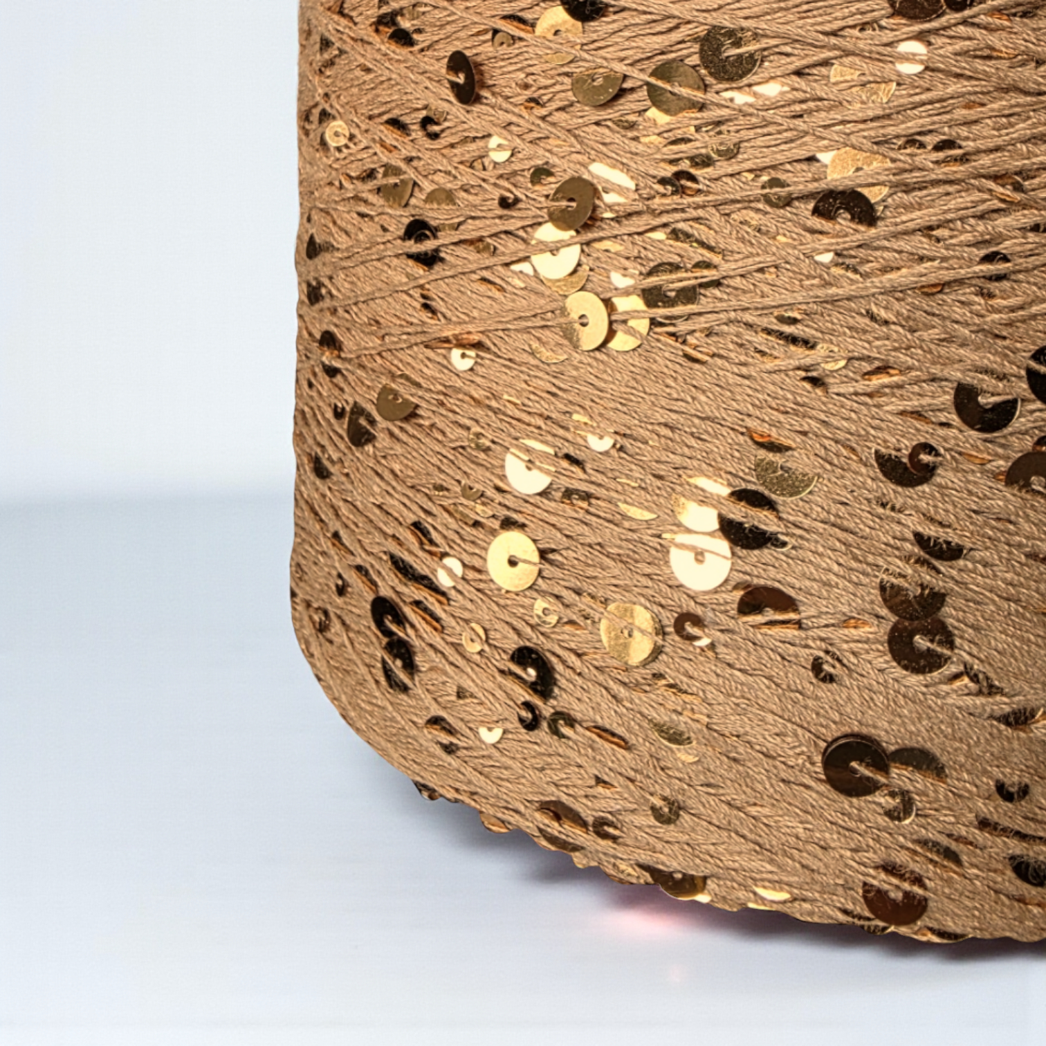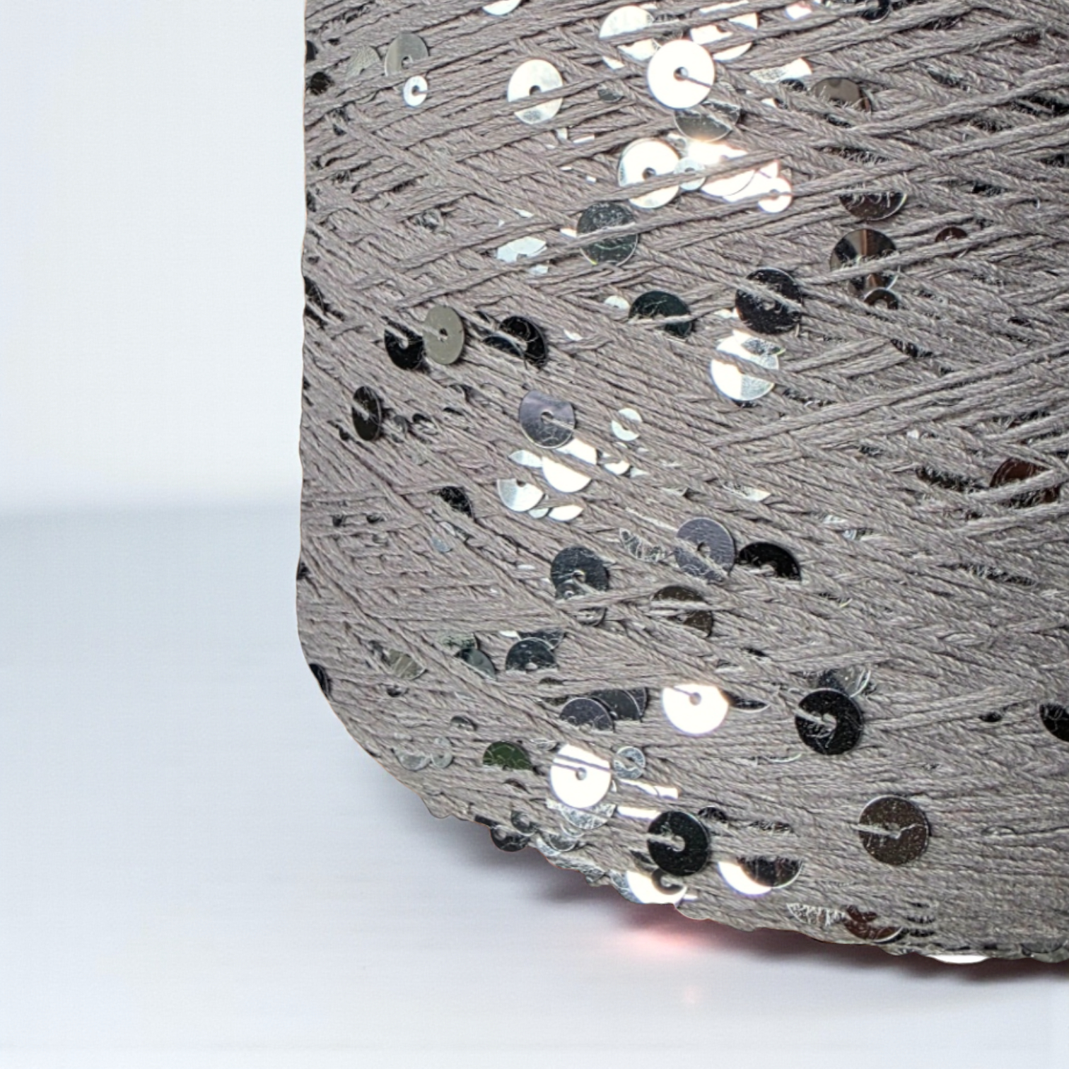 Our Cotton Shimmer Sequin Yarn is a smooth 100% cotton thread delicately sprinkled with flat metallic sequins, perfect for creating pieces that feel comfortable on the skin while catching the light with every movement. From summer tops to party bags, it adds an elegant sparkle without losing that natural cotton touch.