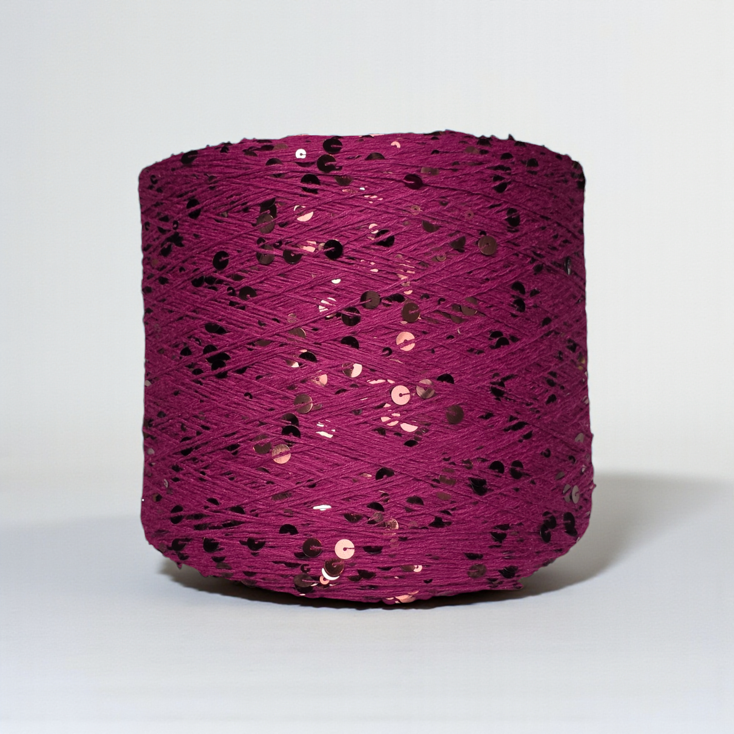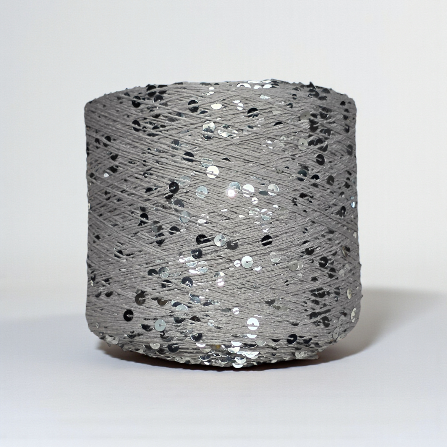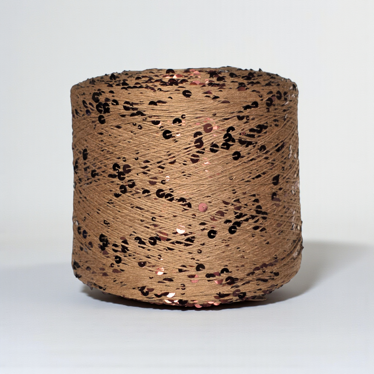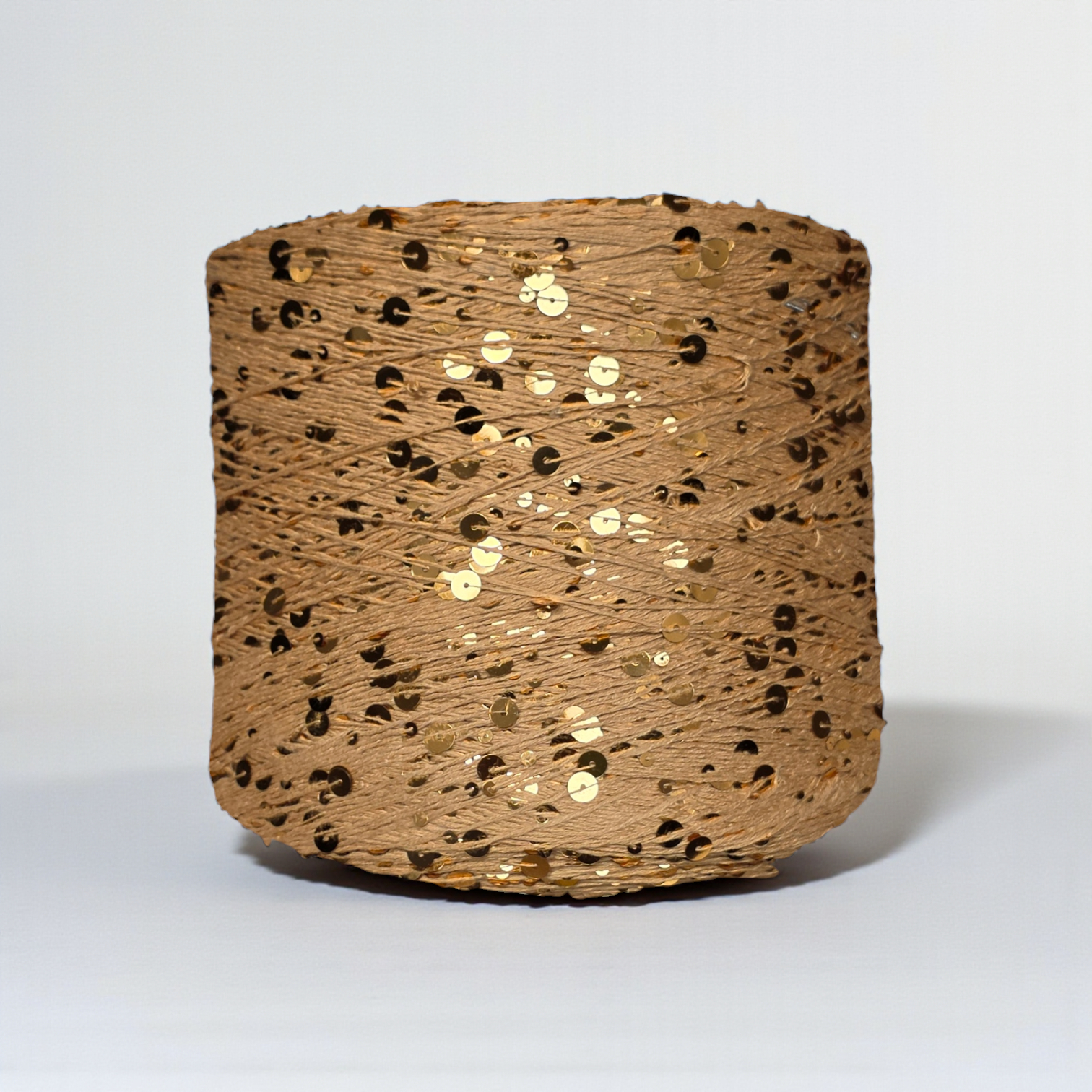 Our Cotton Shimmer Sequin Yarn is a smooth 100% cotton thread delicately sprinkled with flat metallic sequins, perfect for creating pieces that feel comfortable on the skin while catching the light with every movement. From summer tops to party bags, it adds an elegant sparkle without losing that natural cotton touch.