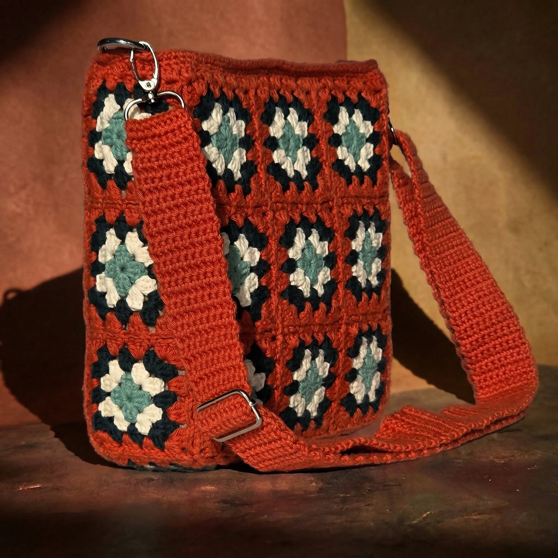 - Craftsmanship: A meticulous assembly of hand-crocheted Granny Squares in premium cotton, blending traditional motifs with a high-fashion, kaleidoscopic palette.